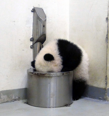 園方說,自從“圓仔”的攀爬能力變好后,在室內(nèi)活動(dòng)時(shí),她就喜歡往縫里鉆,或爬進(jìn)飲水盆里,知道飲水盆的構(gòu)造原理后,便不難理解為什么“圓仔”喜歡坐在里面,只不過越來越大的“圓仔”,就快要塞不進(jìn)去了。