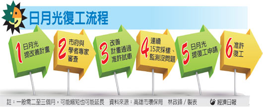 陳金德說(shuō),停工是沒(méi)期限的,何時(shí)復(fù)工以日月光的動(dòng)作而定。若馬上提出改善計(jì)劃,審查核可后進(jìn)行試車,通過(guò)連續(xù)15次的采樣、監(jiān)測(cè)沒(méi)問(wèn)題,日月光提出復(fù)工申請(qǐng),即可同意復(fù)工,一般時(shí)程為二至三個(gè)月,“日月光若做得好,可以更快復(fù)工”。