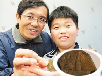 華順發(fā)(左)認為學(xué)生張其昌(右)找到的化石應(yīng)該是三葉蟲,但科博館認為不可能,因為三葉蟲活動的年代比臺灣島誕生早數(shù)億年。