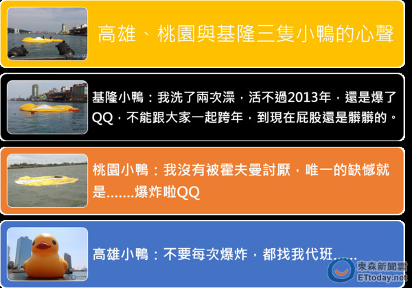 高雄、桃園、基隆3只小鴨心聲。(臺媒圖)