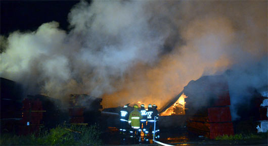 木材廠起火時(shí),火勢相當(dāng)猛烈,隨即蔓延到一旁的木材堆置場與隔壁1家印刷廠,宜蘭縣消防局據(jù)報(bào)派遣8個(gè)消防分隊(duì)、200多名義消前往滅火。