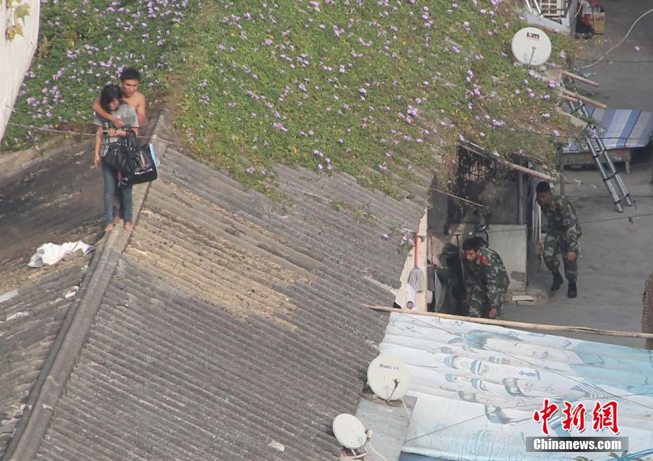 1月20日,海南省三亞市解放二路發(fā)生一起劫持人質(zhì)案件。警方經(jīng)過近5個小時的周旋,制服劫持人質(zhì)的持刀男子,成功解救被劫人質(zhì),人質(zhì)安然無恙。當日上午,林某平(男,30歲,海南萬寧人,已婚,有三名子女)因感情糾紛,持一把菜刀將其女友(李某,24歲,海南萬寧人)挾持到屋頂。中新社發(fā) 周君 攝