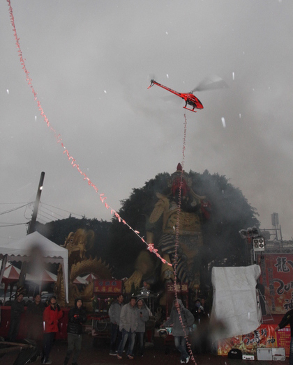 直升機上的鞭炮被雨水澆熄。來自臺媒