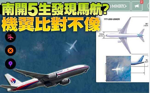 失聯(lián)的馬航班機(jī)為波音777-200機(jī)型,但比對南開學(xué)生發(fā)現(xiàn)的飛機(jī)影像發(fā)現(xiàn),機(jī)翼部分和波音777-200機(jī)型有明顯差異,結(jié)果可能是空歡喜一場。