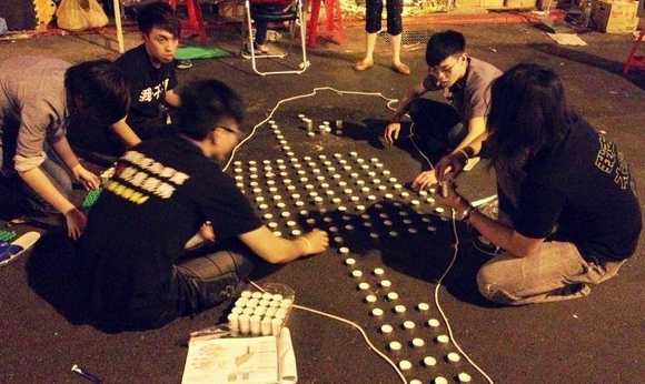學(xué)運最后一夜,學(xué)生如釋重負搶拍照。(臺媒圖)