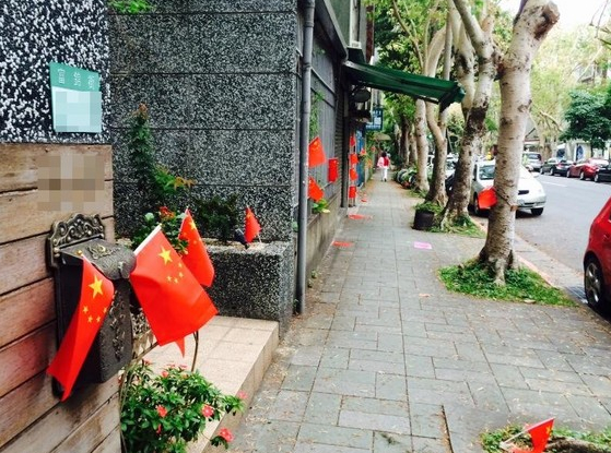 臺(tái)北市民生小區(qū)的富錦街,不少居民一大早起來(lái)運(yùn)動(dòng),就看到自己的家園被紅色旗海攻占,信箱口、門縫邊、樹干上還有花盆邊,滿坑滿谷的五星旗沿街隨便插。一位民眾指出,“這兩排都是。∫恢钡叫聳|街都是,怎么會(huì)整條都是五星旗,對(duì)!很恐怖,整個(gè)無(wú)言,想說(shuō)是被占領(lǐng)了嗎?”