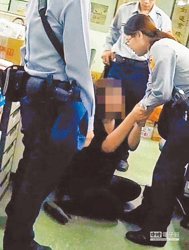 陳姓婦人偷文具,警察前跪求原諒。(圖片來(lái)源:臺(tái)灣中時(shí)電子報(bào))
