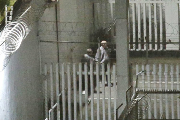 凌晨直擊兩名嫌犯持長(zhǎng)槍現(xiàn)身監(jiān)獄走道上,疑似持槍戒備。 來(lái)源:臺(tái)灣《聯(lián)合報(bào)》(記者程宜華 攝)