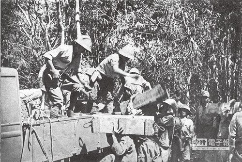 臺籍戰(zhàn)俘監(jiān)視員與日軍在菲律賓以叢林隱蔽,補(bǔ)給彈藥。當(dāng)時的臺籍兵多扮演軍傭角色。(中時報系資料照片)