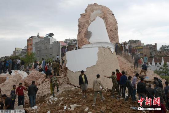據(jù)路透社報(bào)道,尼泊爾25日發(fā)生8.1級(jí)地震,地震造成加德滿都的9層達(dá)拉哈拉塔倒塌,至少一人遇難,警方封鎖了這一地區(qū)。達(dá)拉哈拉塔建于1832年,是尼泊爾著名旅游景點(diǎn),在第8層有一個(gè)觀景陽臺(tái)。目擊者說,一名遇難者遺體被運(yùn)出廢墟中,路透社援引尼泊爾當(dāng)?shù)孛襟w的消息和印度時(shí)報(bào)的消息稱,在塔倒塌時(shí),約有50人被埋在其中。也有外媒聲稱有400人被埋,但這一消息尚未獲得證實(shí)。