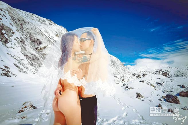 臺灣知名美女部落客“柳喪彪”,和老公跋涉至海拔5000多米的尼泊爾格吉歐里(Gokyo Ri)舉行高山婚禮、拍攝全裸婚紗,沒想到遇到大地震,身上掛彩受傷。(圖片來源:臺灣《中國時報》)