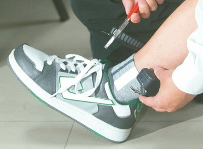 臺當局“法務(wù)部”正研擬擴大電子腳鐐適用范圍。圖為“華岡之狼”2007年假釋時,由廠商替他裝設(shè)電子腳鐐的畫面。(資料圖來自臺灣《聯(lián)合報》)
