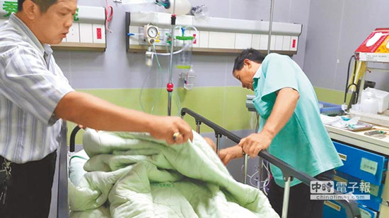 吳父(右)前往醫(yī)院認(rèn)尸,哀慟不已。(圖自臺(tái)灣“中時(shí)電子報(bào)”)