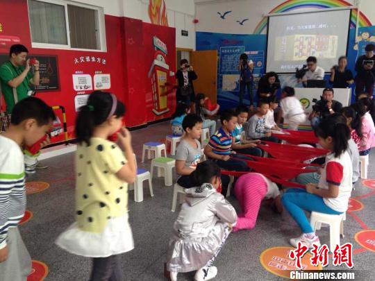 學(xué)生在安全體驗教室模擬火災(zāi)逃生 賀劭清 攝