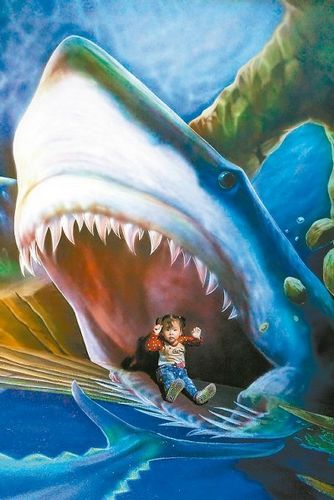 “救命!”小女孩一靠近墻上的鯊魚,擔(dān)心下一秒就要被吃掉,逼真的場景,讓她嚇得差點哭出來。