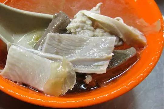 寧夏夜市里另一家備受推崇的老字號(hào),有60年的歷史,主打豬肝湯,豬肝軟脆順滑,并無(wú)夸張的腥味,如果不喜歡食用豬肝,這里也有豬肚湯可供備選。