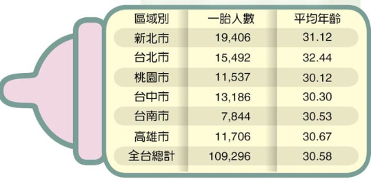 反之,臺(tái)北市、高雄市等6都及新竹縣、新竹市、嘉義市、金門縣、連江縣共11個(gè)縣市生育第1胎年齡平均超過30歲,生育第3胎以上的比率亦較低。