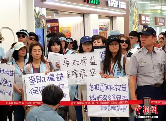 6月24日,以臺灣中華航空公司空服員為主的桃園市空服員職業(yè)工會于凌晨起罷工。當(dāng)日上午6時到晚上10時,桃園機場及松山機場出發(fā)共67班航班全部取消,受影響旅客約2萬多人。圖為罷工代表在松山機場打出“空服員爭取權(quán)益,請旅客多多包涵”等標(biāo)語,向乘客解釋情況,請大眾理解并支持罷工。 中新社記者 邢利宇 攝