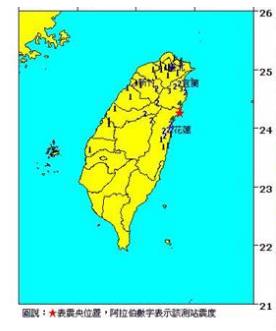 臺灣氣象地震測報中心數(shù)據(jù)顯示,27日中午12時2分,這起地震震中位于花蓮近海,即花蓮縣政府北偏東方32.6公里,地震深度6.7公里,規(guī)模4.6;ㄉ徔h和平5級,太魯閣4級,宜蘭縣南澳也有4級;花蓮市、宜蘭市、南投縣合歡山、臺中市、桃園市及新北市五分山各測得1級。(中國臺灣網(wǎng) 盧佳靜)