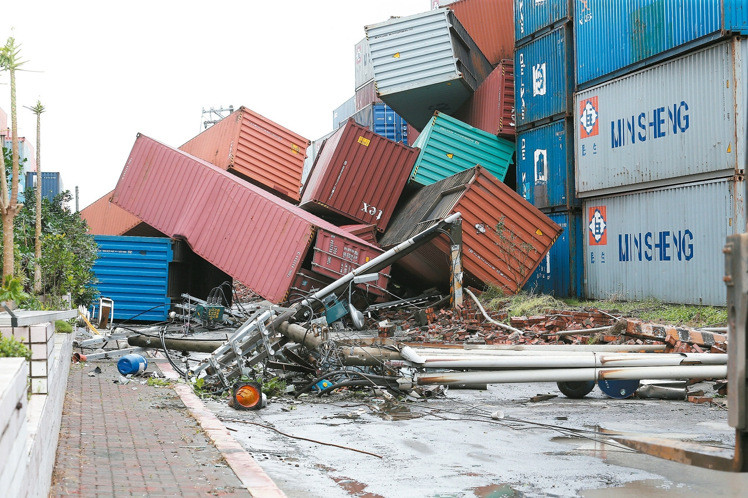 “莫蘭蒂”強(qiáng)襲,高雄港有許多貨柜被吹倒。(圖片來源:臺(tái)灣聯(lián)合新聞網(wǎng))