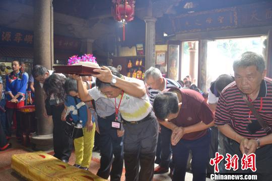 圖為進香團信眾向媽祖行禮。 林群華 攝