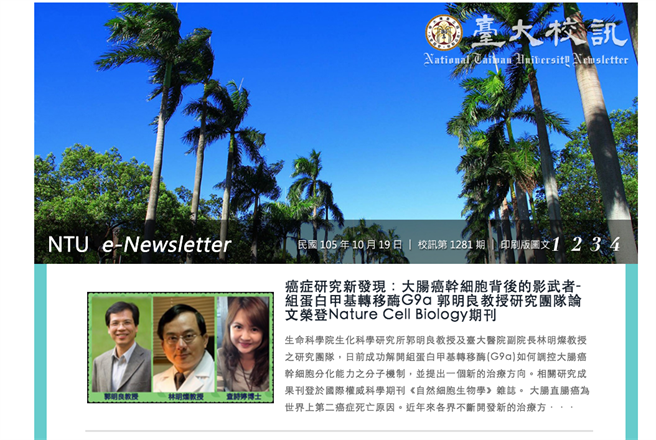臺大曾在校訊上刊出研究團隊榮登國際期刊的新聞(圖片來源:“中時電子報”)