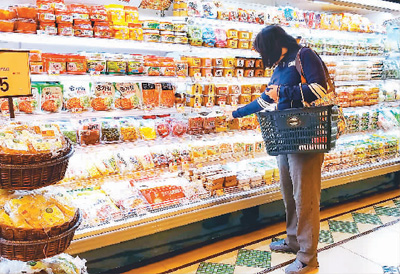 圖為顧客在超市中日本食品貨柜前選購。 本報記者 張盼攝