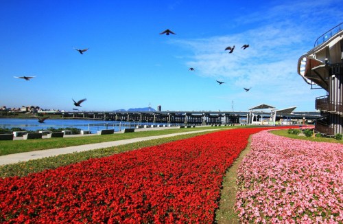 水利處河川管理科科長(zhǎng)游百崧說,去年就在敦煌碼頭附近種植花海,但今年再增加種植的數(shù)量,由72000盆花草營(yíng)造花毯圖騰,包括“粉萼鼠尾草”、黃花“馬纓丹”和紅、粉二色的“四季秋海棠”,非常壯麗吸睛,廣場(chǎng)綠地頓時(shí)變身展露大地繽紛姿色,讓臺(tái)北市冬季的河濱也充滿如春季般美麗而豐富的色彩。