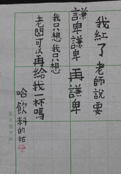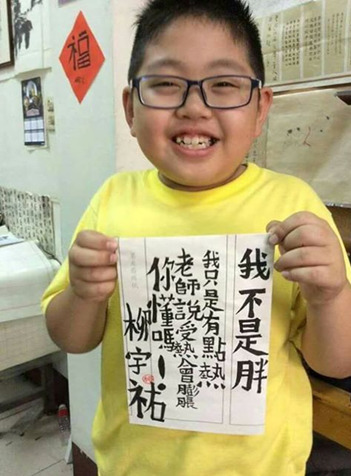 “我不是胖,老師說受熱會膨脹!本妥x臺灣彰化社頭鄉(xiāng)舊社國小三年級的柳宇佑以書法寫下自嘲言語爆紅,讓看到的網(wǎng)友直呼太可愛、太療愈了。