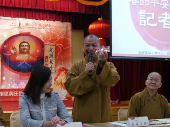 佛光山召開春節(jié)平安燈會(huì)記者會(huì),常務(wù)副主持慧傳法師(中)轉(zhuǎn)述星云大師身體狀況,同時(shí)感謝醫(yī)療團(tuán)隊(duì)照顧與大家關(guān)心。記者徐白櫻/攝影圖片來源:聯(lián)合新聞網(wǎng)