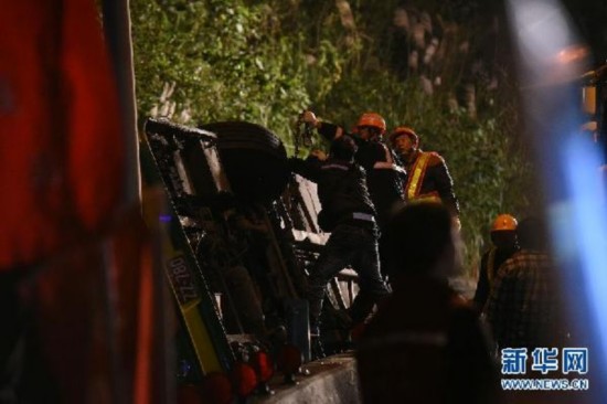 這是2月13日晚拍攝的事故救援現(xiàn)場。新華社記者歐東衢攝