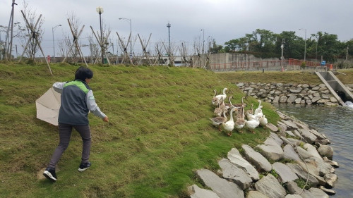 他強(qiáng)調(diào),鴨鵝是雜食性,上岸覓食也是天性,不是餓到受不了才登岸找東西吃,近來島內(nèi)防范禽流感疫情,呼吁游客不要喂食或靠近當(dāng)?shù)伉嗼Z。