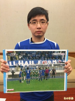 這是“藍色疾風(fēng)加油團”代表林詠晨舉著被要求撤下的“臺獨”旗幟。
