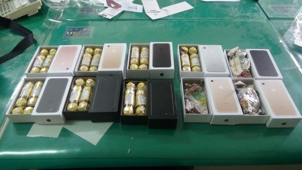海外網(wǎng)4月6日電 據(jù)臺“聯(lián)合報(bào)”報(bào)道,彰化市陳姓女子與男友合資在網(wǎng)絡(luò)購買22臺全新蘋果7以及蘋果7 PLUS手機(jī),準(zhǔn)備轉(zhuǎn)手賣給經(jīng)銷商賺取差價(jià),沒想到遭詐騙,打開蘋果手機(jī)外盒,里面是不到500元新臺幣的整人玩具:8顆金莎巧克力、鐵塊。陳姓女子與男友憤而報(bào)案后,臺警方將陳姓嫌犯緝獲,6日依詐欺罪嫌移送法辦。