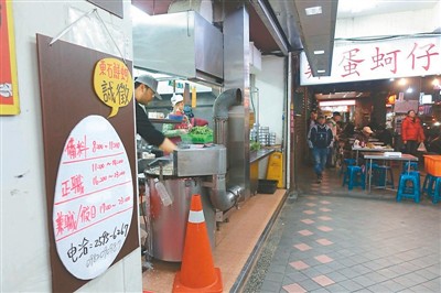 延三夜市所在路段長約1公里,雖然面積不大,老店卻不少,葉家五香雞卷、旗魚米粉、大腸煎、紅燒鰻、海鮮粥等,都是老饕最愛,常見排隊(duì)人潮。過年后,延三夜市卻面臨“用工荒”,處處張貼招人公告,豆花、牛排、海鮮粥、蚵仔煎等業(yè)者都在征人,部分店鋪甚至招人近1個(gè)月,卻依舊乏人應(yīng)征。