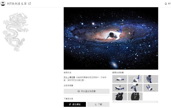 在宇宙中“仆街”的柯P。(圖翻攝自“柯P跌倒產(chǎn)生器”,)