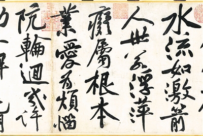黃庭堅書法(局部)。ū疚恼掌鶠橥踹B偉攝)