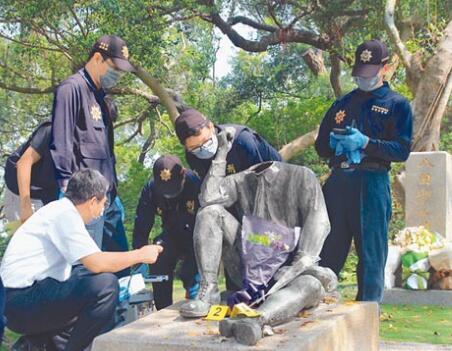 16日清晨,嘉南水利會某會務(wù)委員,晨運(yùn)經(jīng)過八田與一銅像時,赫然發(fā)現(xiàn)銅像頸部疑似遭利器切割,頭顱不見了,水利會長楊明風(fēng)獲知,迅速通報警方。市政府得知后高度重視,臺南市警局組專案小組調(diào)查,初步判斷,銅像頭部是遭電鋸切斷,現(xiàn)場已采集多枚可疑指紋、煙蒂,將進(jìn)行分析,也調(diào)閱周邊監(jiān)視器,清查可疑分子。