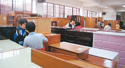 每到周末,3個(gè)再生家具拍賣場(chǎng)便會(huì)擠滿前來(lái)淘寶的民眾。筆者曾參加過(guò)文山區(qū)拍賣場(chǎng)的一次活動(dòng),當(dāng)天有400多件再生家具供民眾選購(gòu)。每一件家具上面都貼了底標(biāo),眼前各式各樣的光亮家具,很難想到它們都是由破舊的家具維修而成。