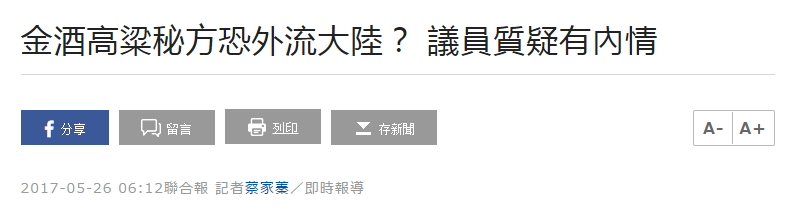 環(huán)球網(wǎng)5月26日報(bào)道 (記者 徐亦超)金門,與廈門一水之隔,昔日兩岸緊張對峙時(shí)的“最前線”。在大陸民眾認(rèn)知里,金門兩物最出名:菜刀與高粱酒。今天不說刀,說酒。因?yàn)榕_灣媒體今天說,金門有人很緊張,怕他們的高粱酒被大陸搶走。