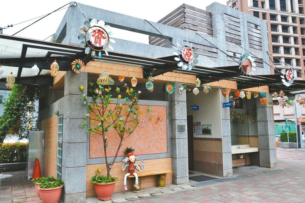 新北市柳堤公廁均以回收品裝飾,別具特色。(圖片來(lái)源:臺(tái)灣“聯(lián)合新聞網(wǎng)”)