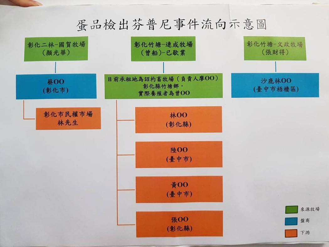 “農(nóng)委會”副主委陳吉仲表示,歐洲與韓國都發(fā)生了“芬普尼雞蛋污染”事件,臺“行政院”與“食安辦”要求各單位進(jìn)行畜牧場以及上市雞蛋的抽驗(yàn)。同時,“農(nóng)委會防檢局”也同步作芬普尼檢驗(yàn),前天在45件樣本中已確認(rèn)有3家牧場驗(yàn)出芬普尼,且這3家蛋雞場都集中在彰化,相關(guān)部門第一時間已進(jìn)行移動管制。
