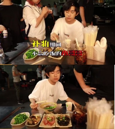 到臺灣就算再忙當然也不能錯過美食佳肴!影片中的易烊千璽趁著補妝的間隙便對著皮蛋豆腐、炒青菜等4道小菜大快朵頤,最后還不忘來一大碗面。伴隨著“好餓、好餓、好餓、每天都好餓”的背景音樂,時而左看看時而右看看的千璽嘴巴完全不會停下來,吃到最后他還很突然說了句“我吃飽了”,反差萌的樣子簡直狂撩妹心。