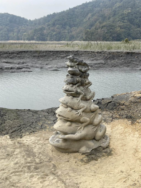 (原標(biāo)題:臺媒:日月潭蓄水率創(chuàng)新低,“九蛙疊像”九蛙全露出來了。