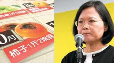 民進(jìn)黨水果月歷文宣引發(fā)藍(lán)綠柿子大戰(zhàn),民進(jìn)黨參選人蔡英文昨親上火線公開道歉。蔡說,“為了不讓問題模楜焦點(diǎn),讓對手有炒作空間,對于文宣相片誤植(甜柿),我愿意道歉,也要求團(tuán)隊未來要更加謹(jǐn)慎。”但不少柿農(nóng)質(zhì)疑,遲來的道歉根本無濟(jì)于事。【詳細(xì)】