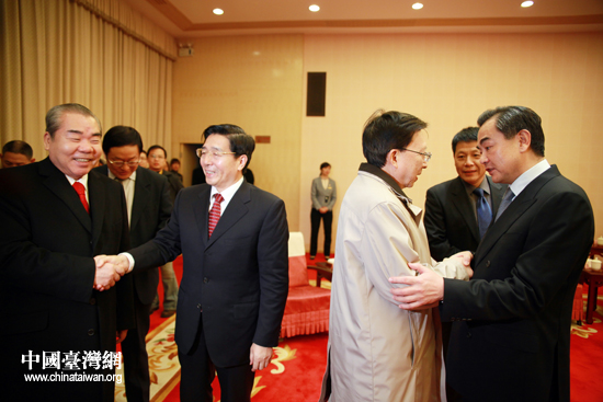17日晚,廣西壯族自治區(qū)黨委書記郭聲琨和中臺辦、國臺辦主任王毅一起,會見來桂林參加第九屆兩岸關(guān)系研討會的臺灣中華文化總會會長劉兆玄等嘉賓。