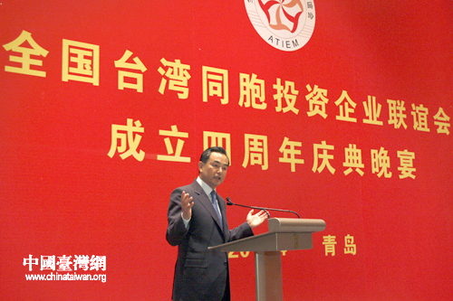 很高興有機(jī)會(huì)與大家在美麗的青島再次相聚,首先我謹(jǐn)代表中共中央臺(tái)辦、國(guó)務(wù)院臺(tái)辦對(duì)臺(tái)企聯(lián)成立四周年表示熱烈祝賀,對(duì)新任會(huì)長(zhǎng)取得的成績(jī)表示高度贊賞,向臺(tái)企聯(lián)所有的朋友們致以誠(chéng)摯的問候。
