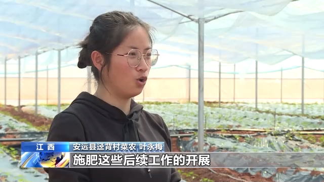 安遠(yuǎn)縣逕背村菜農(nóng) 葉永梅:我們的蔬菜種下去半個(gè)多月了,長(zhǎng)勢(shì)是非常喜人,然后我們要抓緊覆膜、施肥這些后續(xù)工作的開(kāi)展,以便于給蔬菜提供一個(gè)良好的生長(zhǎng)環(huán)境,確保豐收高產(chǎn)。