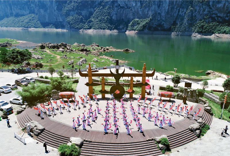 圖為2021年6月6日,人們在化屋村碼頭廣場表演舞蹈。 貴州省委宣傳部供圖 史開心/攝