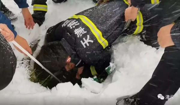 津云記錄,暴雪中“倒掛”井口救人的天津消防員